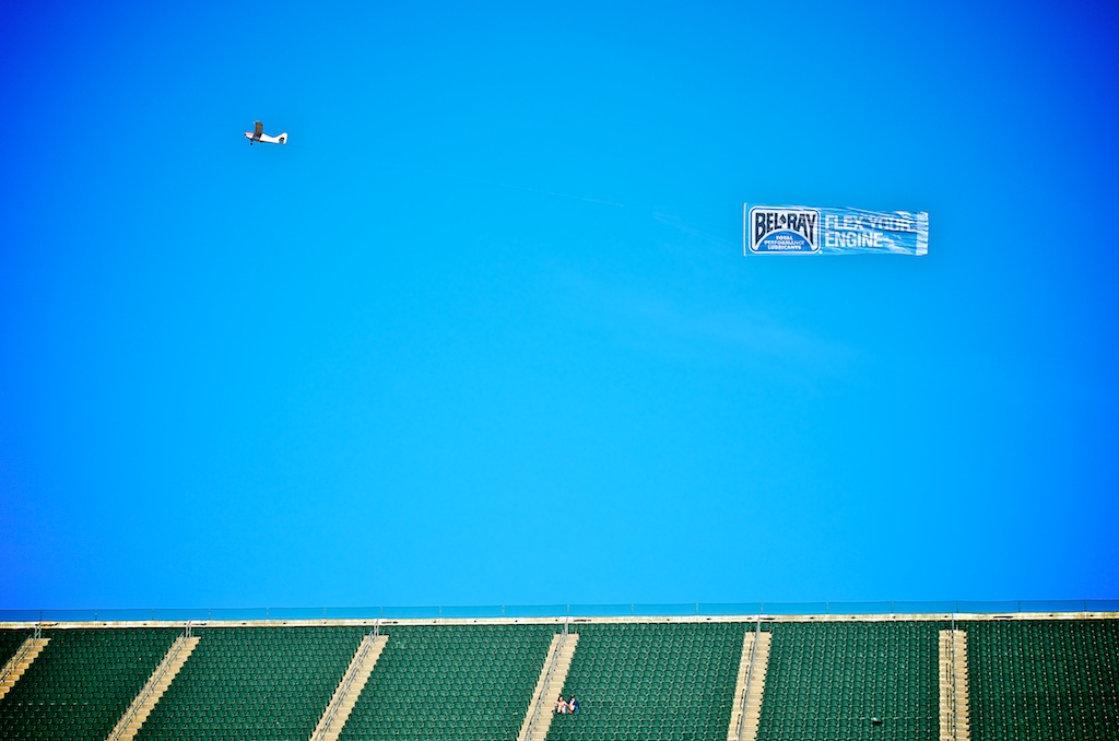 Bel-Ray jumped the gun and brought out the ad plane a few hours early. I wonder how many of those 2 people up in the stands buy lubricants?