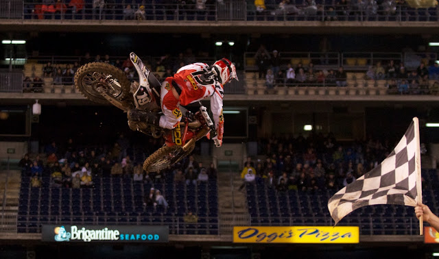 It seemed that every rider, staff member, & fan involved with Round 7 of the Supercross series in San Diego, CA had the same feeling...they knew it was gonna rain, they just did not know when, let alone, how much. I drove seven hours myself, just to see these amazing athletes perform in true fashion...rain or shine! There is nothing quite as detrimental or as favorable to riders. Mud races are where championship hopes can dwindle or accelerate for these points chasers. This is how the 14 hour day played out.