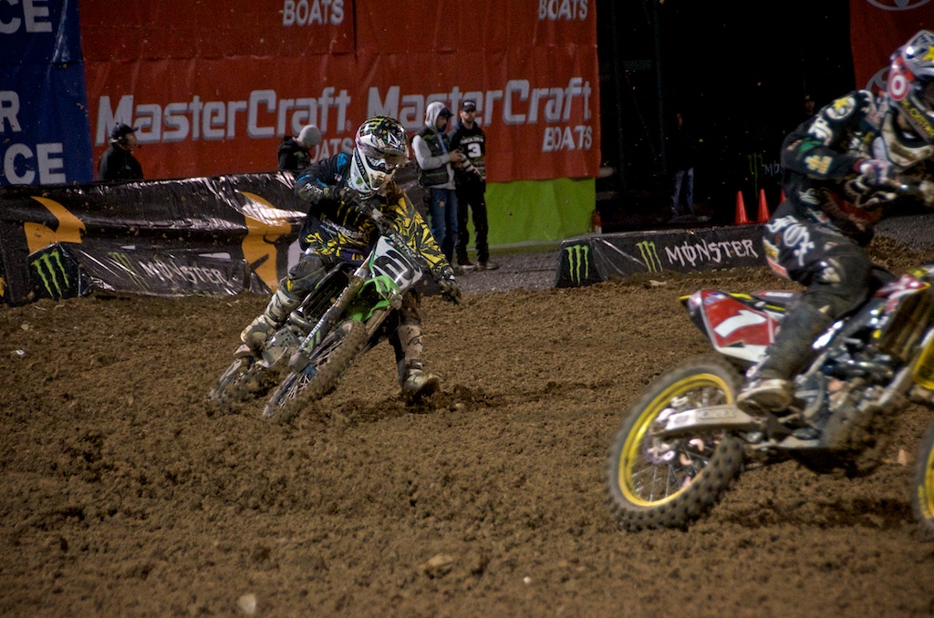 Then we got the good ol' #twotwo! This was Chad's night. He knew he belonged on the podium, all day I had taken notice of his confidence...on and off the track, Him & I both had a feeling that he would be smiling, come the trophy presentation. And sure enough, Reed landed himself a cozy little spot in 2nd place after catching back up to Dungey#1. It seemed that #22 had less fatigue during the last few laps of the race. Maybe from hopping through the giant whoop-dee-do's in a few hits instead of skimming the tops while hitting every one? Maybe from not charging too hard in the first half of the race (pacing)? Maybe he had more to fight for on this night? Or maybe it was one of those energy drinks? Whatever the hell it was, Reed in dramatic fashion...passed #1 in the last corner before the checkers for a bigger check, more confidence, and a few more points. Very Savvy...